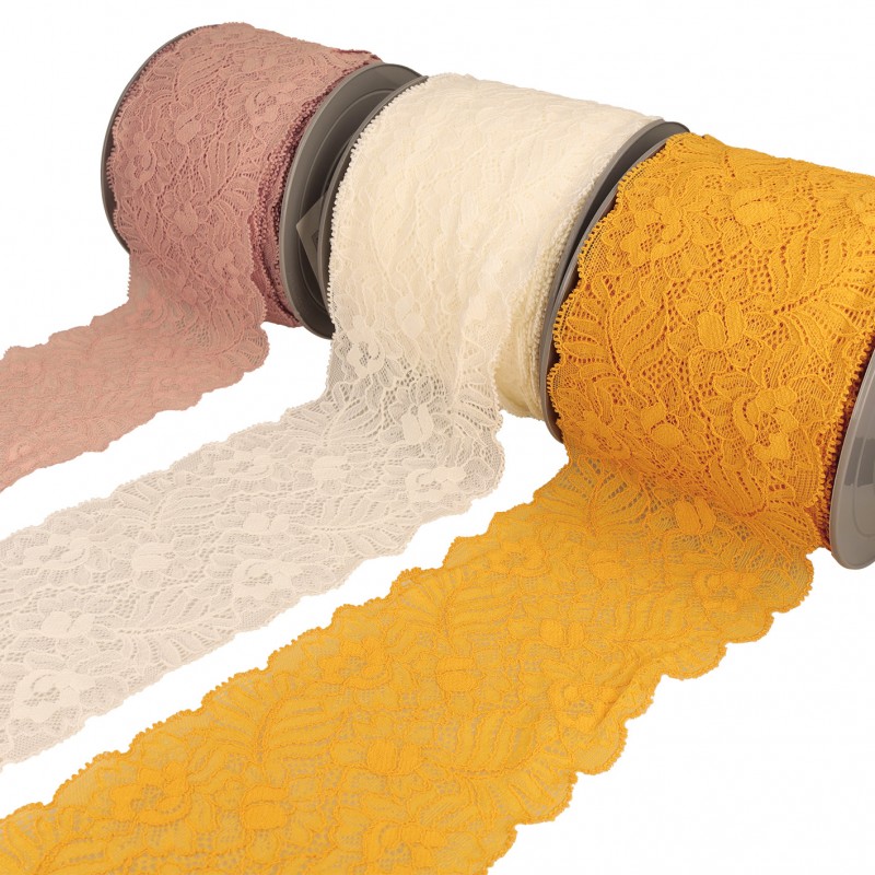 DENTELLE ELASTIQUE FLEURS ET FEUILLES
